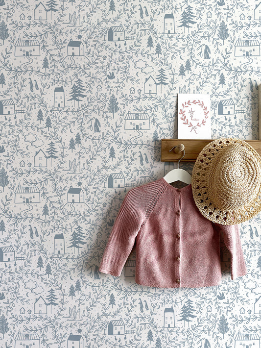 Cottages in the Woods Luxury Wallpaper for Kids ~ Pebble