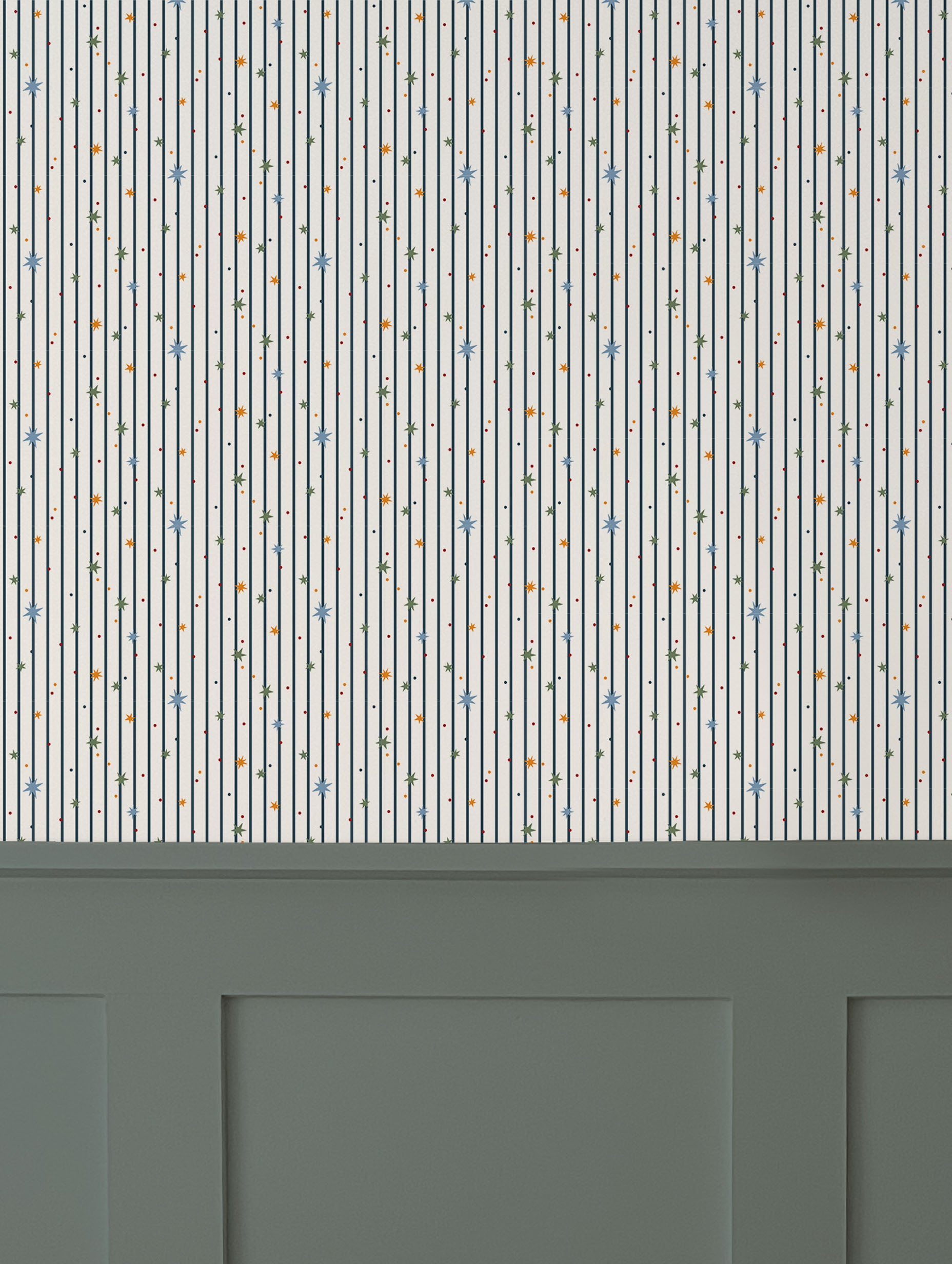 Add a playful sprinkle of magic to your child’s room with our Stars & Stripes wallpaper. Featuring charming stars on a trendy stripe background in a lively pattern, this design brings movement and joy to any space. Perfect for nurseries, playrooms, or bedrooms, it’s a versatile choice that sparks imagination while keeping walls fun and stylish.